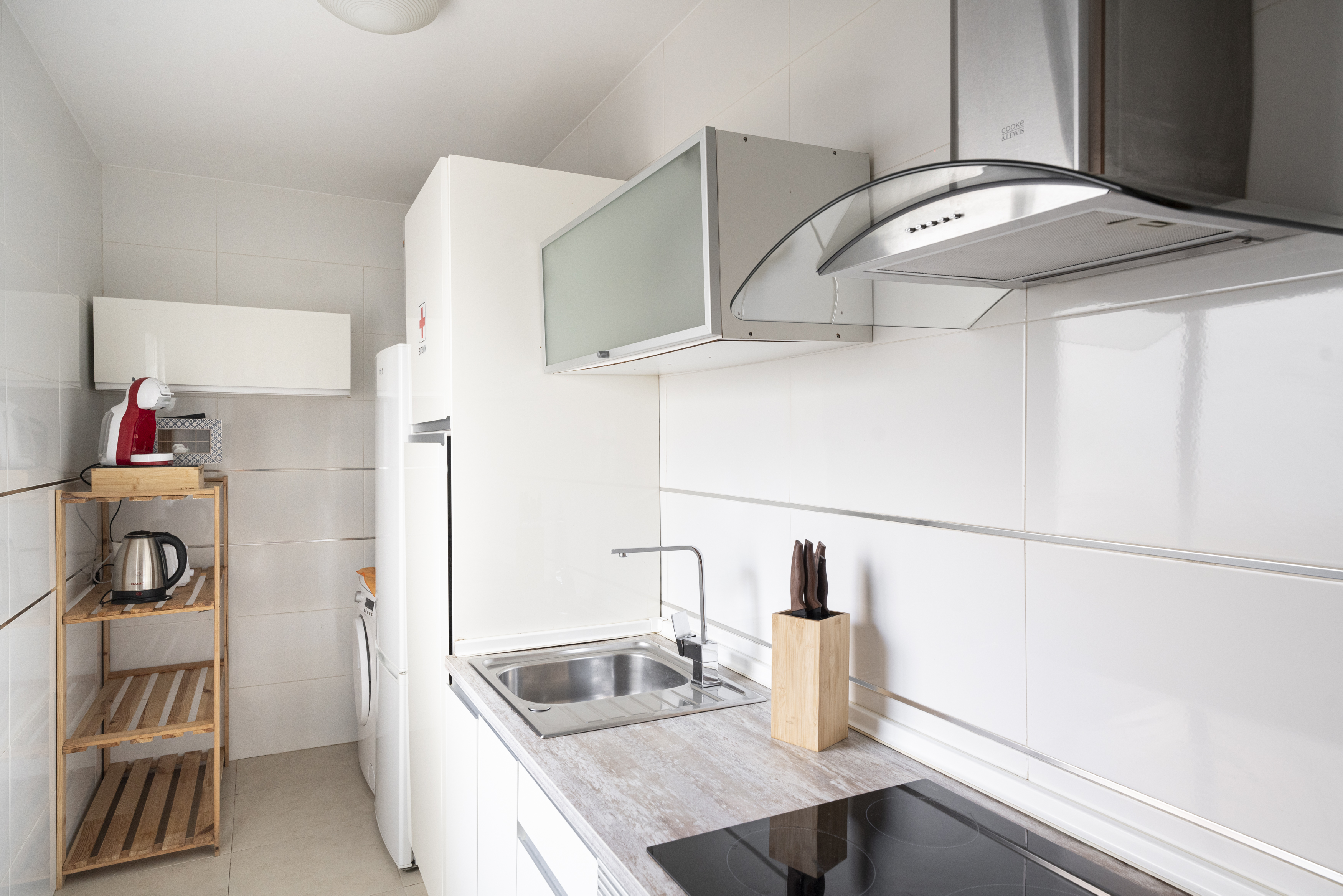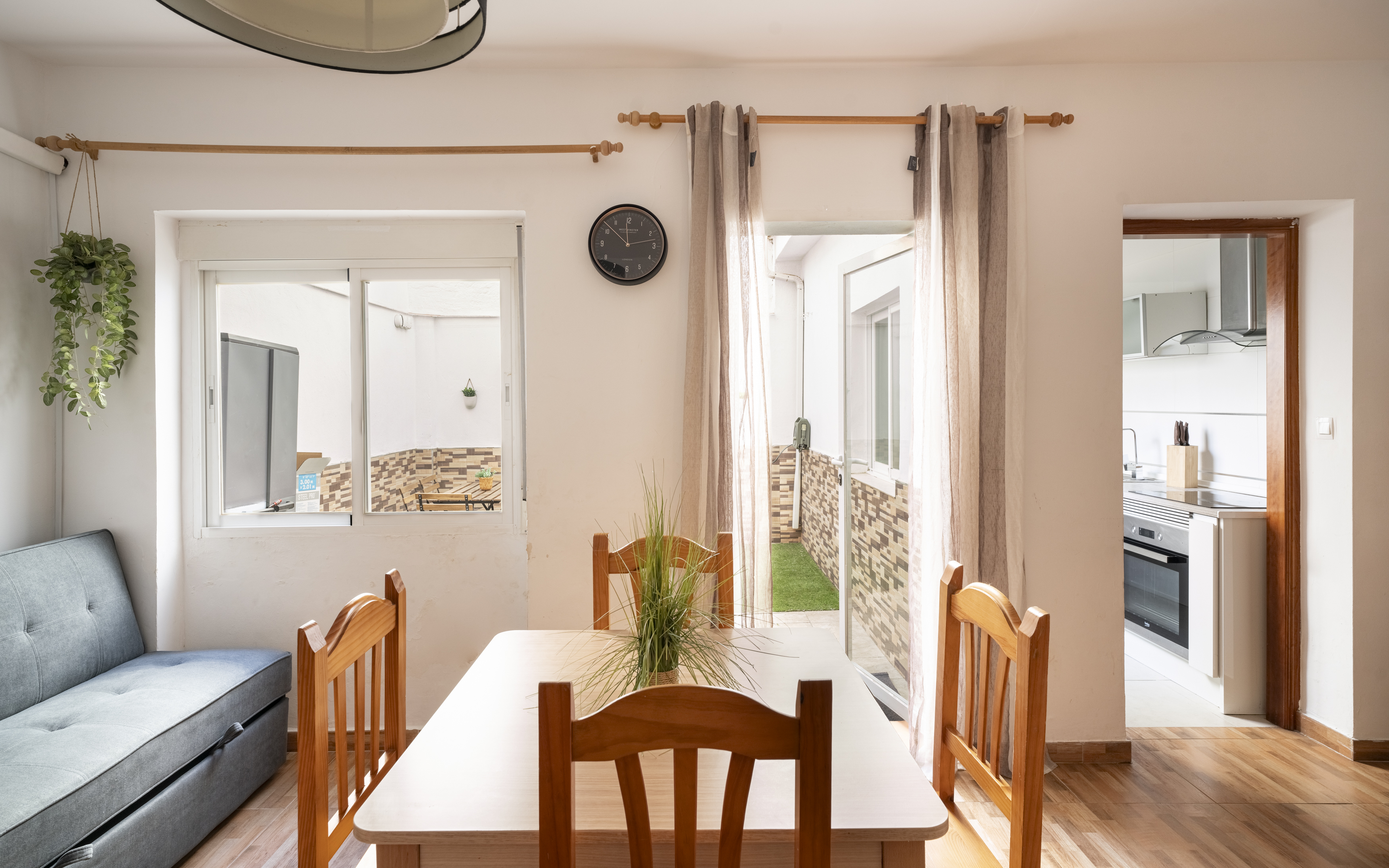 Este espacioso apartamento consta de una sala de estar, 4 dormitorios independientes y 2 baños con ducha y secador de pelo. La cocina está bien equipada con utensilios, horno, microondas y tostadora. También dispone de lavadora, tetera/cafetera, TV de pantalla plana y patio. El alojamiento cuenta con 5 camas.